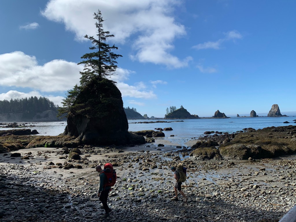 The next morning we set off for the cost to hike out to Scott Creek, where I think I picked up some giardia, and thankfully no one else did. The Olympic National Park stretches most of the west coast of the state of Washington, and the trail along it is best traveled at low tide. We had to scale and descend a few cliffs in order to make it to our site.